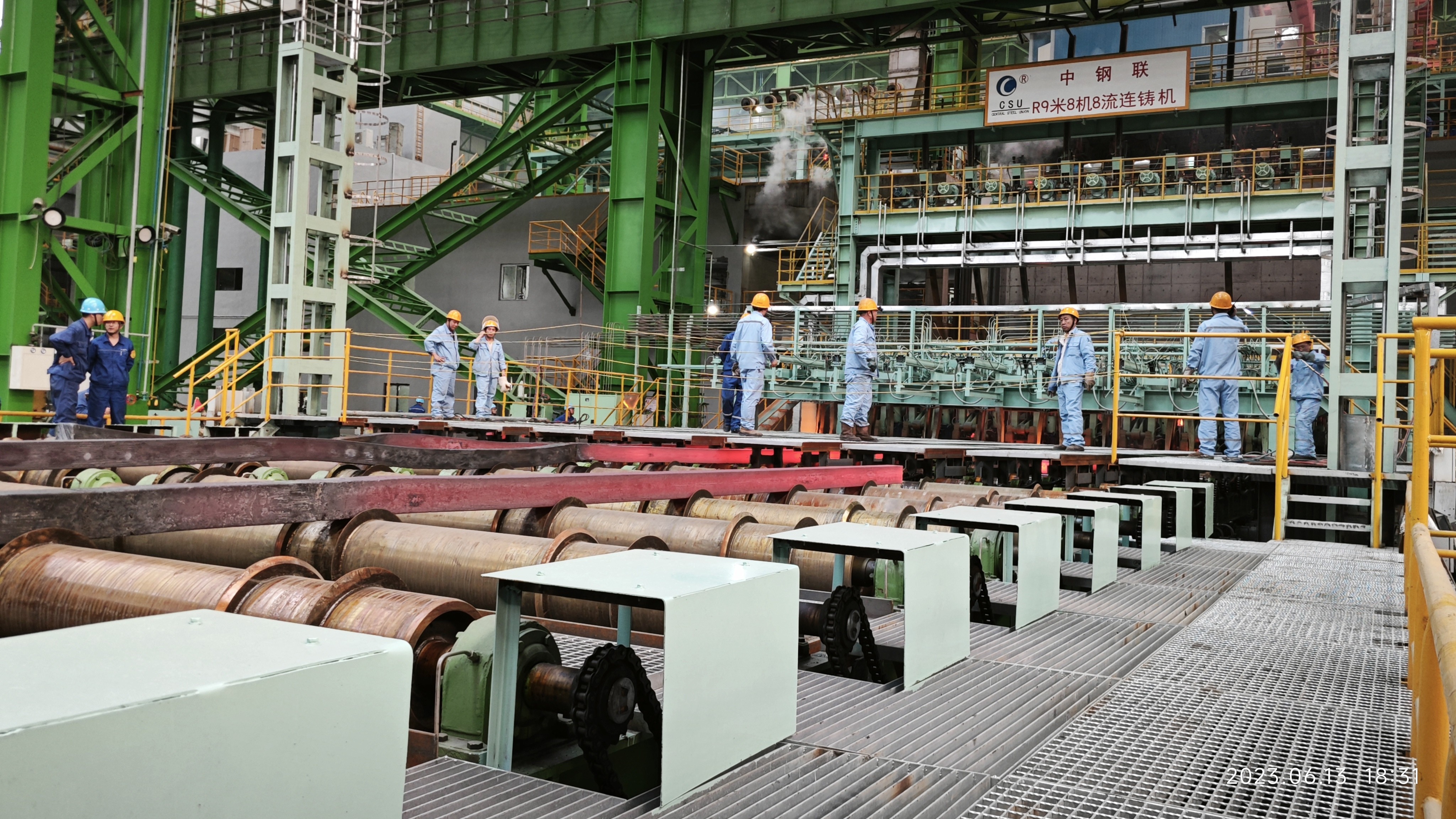 2023 年6月14日下午,由开元大厅总承包的本溪北营钢铁1 号连铸机热负荷试车成功。该连铸机为 8 机 8 流连铸机,可生产碳素结构钢、冷镦钢、焊条焊丝钢、低合金钢、帘线钢、钢绞线钢等钢种,年产铸坯 220 万吨,具有高兼容性、高效节能、智能化等特点,技术水平世界领先。