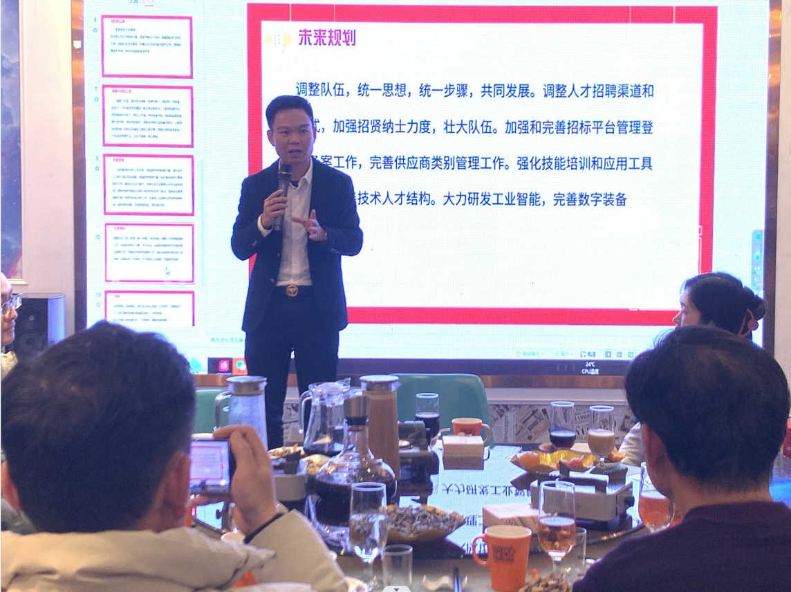 “2023 年是钢铁行业产品以及产业结构调整的转折之年, 这一年极具挑战、极不平凡,钢铁企业处于半生产状态,甚至停产,行业持续低迷。但是中钢联依然锁定目标,不忘宗旨,牢记使命,在众多不利因素下,我们依然坚定、坚持开展各项工作,在曲折道路上勇毅前行。”正如中钢联董事长符乃良在年会致辞 时表示,面对充满挑战的 2023 年,全体中钢联人聚焦新变化、开拓新思维、应用新技术,主动拥抱机遇,不畏挑战。在 2023 年,浙江友谊大圆坯、九江萍钢技改、鞍本钢集 1、2 号连铸机、山西高炉等工程项目顺利投产,北交所上市工作持续开展,中钢联坚定不移以人为本,加强团队学习培训工作和企业文化建设,不断完善企业文化的各项宣传工作,并且持续拓展国外市场,夯实东南亚和非洲市场。卓越的成绩离不开中钢联人的积极作为和勇于担当。2024 年是新的起点,新的高度,我们将继续满怀激情,上下齐心、携手并进。最后,符乃良董事长对公司全体员工致以新年的美好祝福。