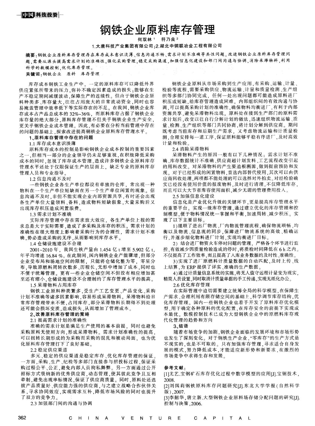 钢铁企业原料库存管理