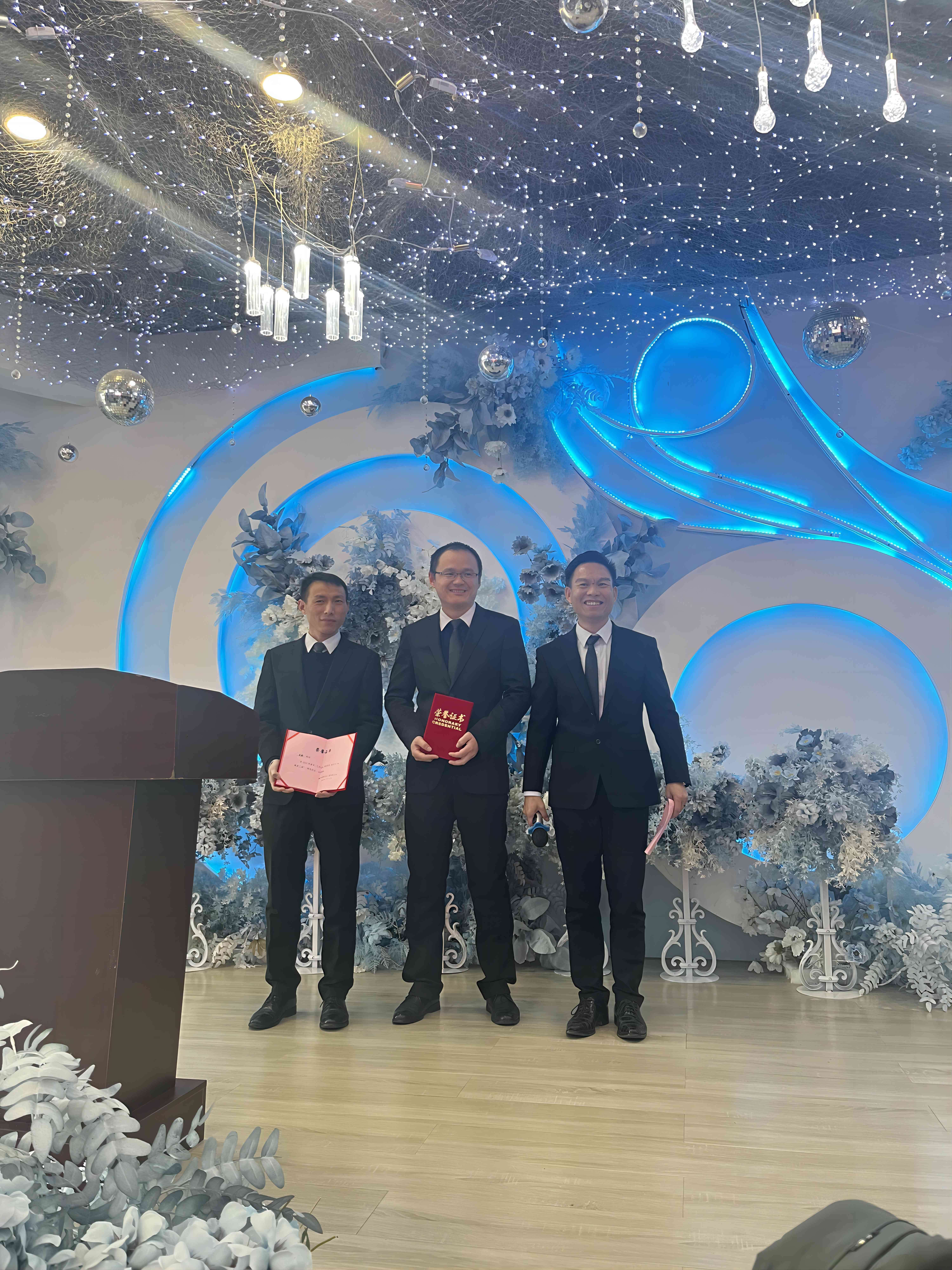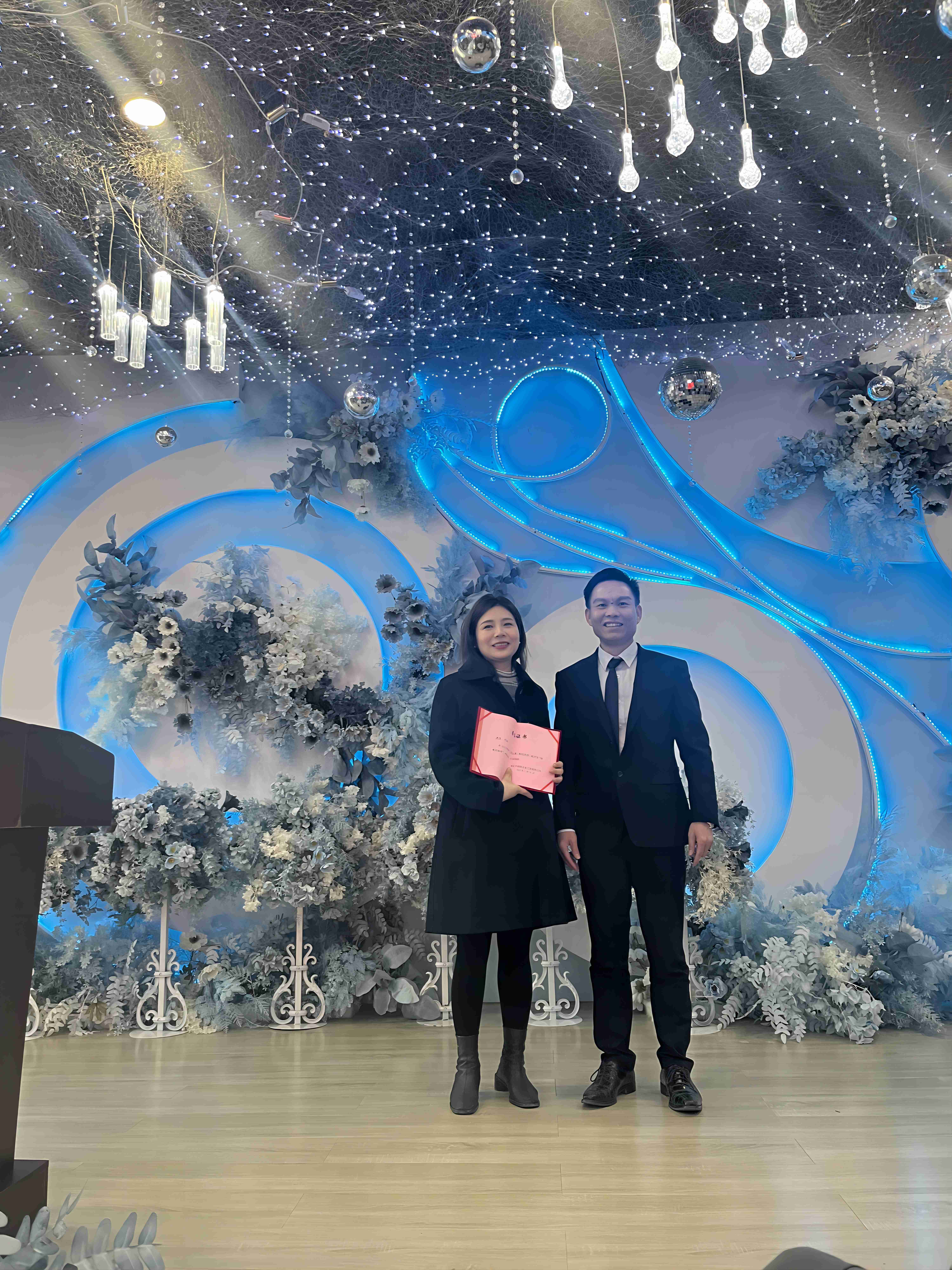 中钢联的今天,离不开一线员工的共同努力,一份付出,必有一份回报。主持人激情洋溢地宣读 2022 年度公司“优秀员工”的获奖者名单,分别是设计部部长吴鹏、项目部部长赵建昌、市场部周芳,他们怀着激动而兴奋的心情走上领奖台接受公司领导的嘉奖,符总为每位获奖人员颁发荣誉证书。最后由优秀员工吴鹏和赵建昌分别上台发言,公司全体成员也为获奖同事献上了最真诚的祝福和最热烈的掌声。