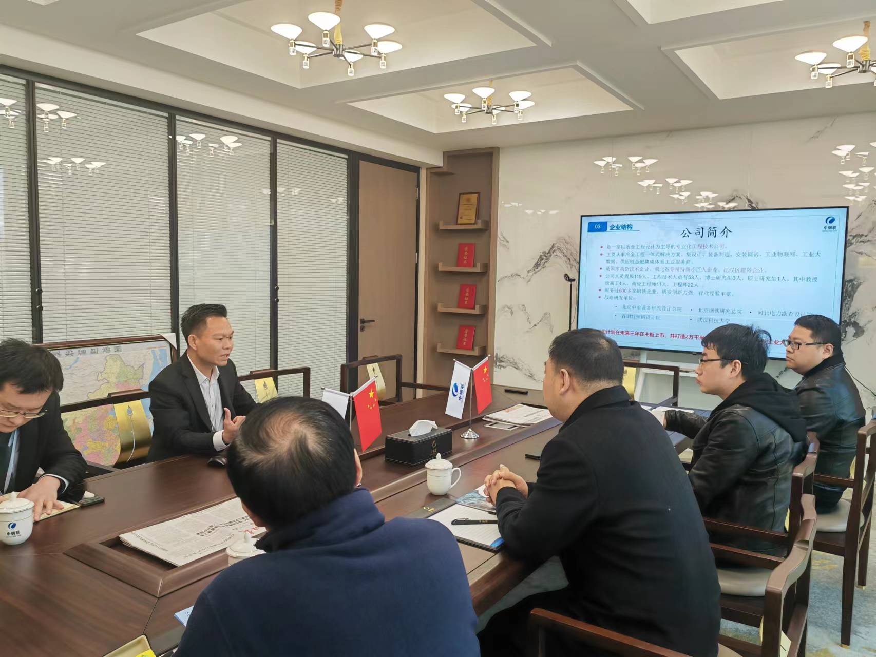 2 月20 日上午,武汉市江汉经济开发区管委会杨栋主任一行,前来开元大厅实地调研交流,中钢联董事长符乃良、副总经理金巍等人进行了热情接待。