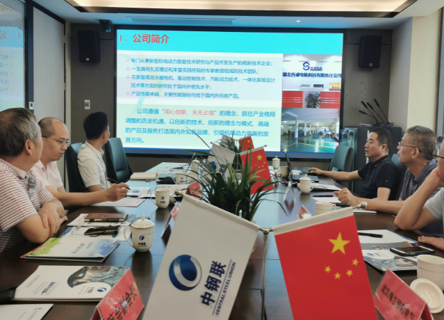 尔后由湖北中钢联董事长兼总经理符乃良、湖北西浦电机副总经理施志敏两位老总分别简要介绍公司业务经营、创新技术的情况;符董事长重点向大家介绍了公司近几年业绩、服务范围、合作企业、业内排名,从“一个核心、三项技术”“四大核心技术 ,六大服务板块”深入浅出的谈了公司在钢铁冶金行业所取得的成绩和发展方向,表示在钢铁领域与在坐的企业,尤其是机械、机电、工业物联网、智能控制等方面有很大合作空间。湖北西浦电机副总经理施志敏重点介绍了西浦永磁电机节能、技术核心、发展历程,从新型高效节能三项稀土永磁同步电机、特高效低速大扭矩永磁直驱工业装备、创新型无杆采油三大产品向在座企业展示。两位老总介绍完毕后,通联路桥的张总、湖北中钢联的符总、西浦电机的施总、梅兰穆勒电气公司的林总分别就关心问题做了提问,现场业内专家一一做了解答,会场氛围异常浓厚。