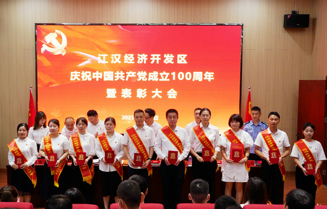 开元大厅在建党100周年之际,被江汉经济开发区评为两优组织