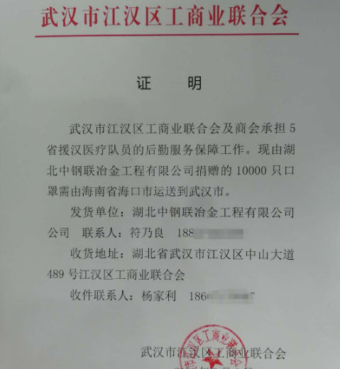 公司本部坐落在武汉市江汉区,武汉疫情的发展时刻牵动着各级领导的心;由于春节假期,员工多数离汉在家自觉封闭管理,远在中国最南端的海南省符乃良总经理得知公司所在区里抗“疫”紧缺物资口罩的时候,毫不犹豫在海南四处打听,联系各界朋友,紧急筹集到10000只口罩,由省会海口直接运抵武汉,缓解了“5省援汉医疗队”后勤服务保障之急。